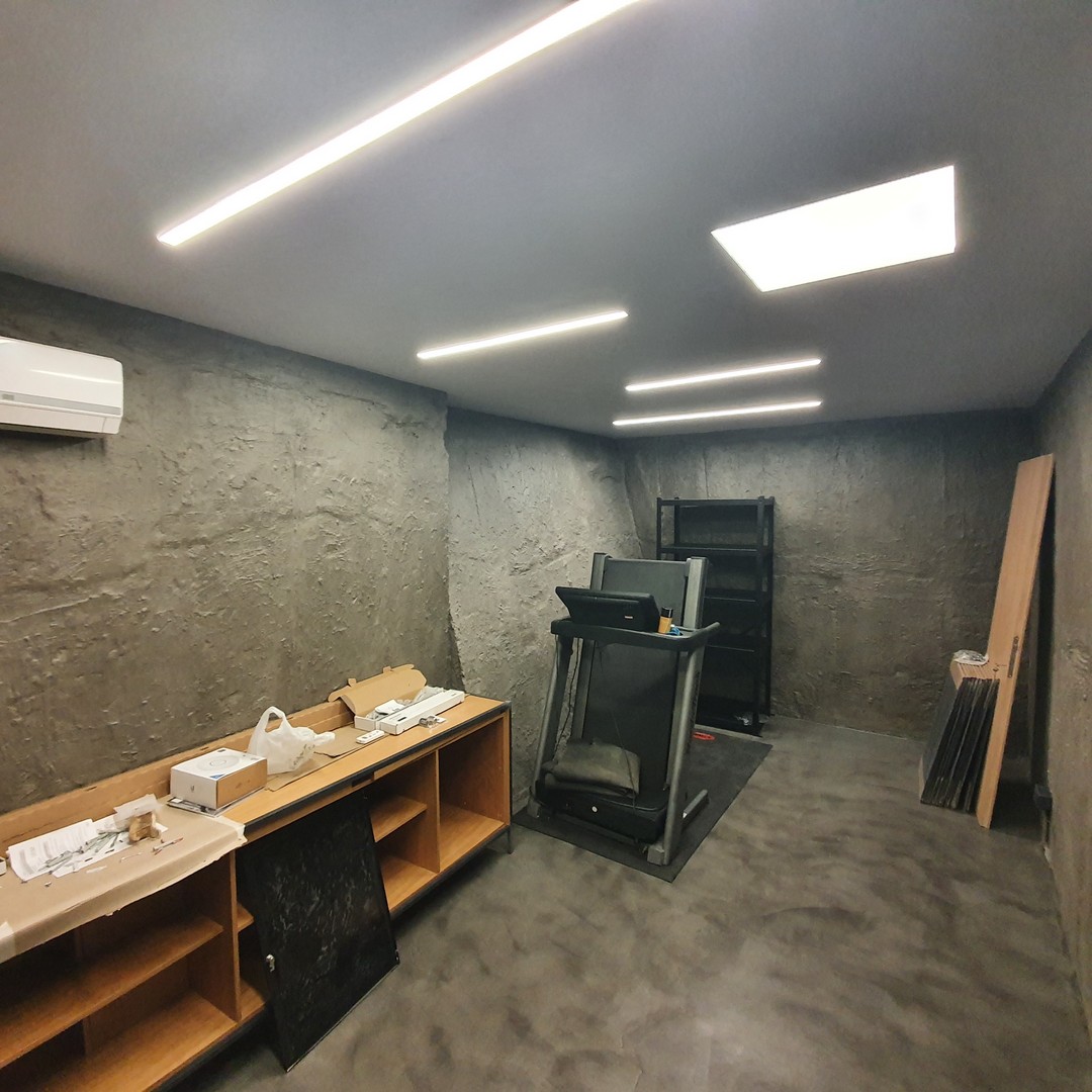 Μετατροπή παλαιού βόθρου 25τ.μ σε προσωπικό χώρο χρήσης με λουτρό με Ντους και εντοιχιζόμενων είδη υγιεινής Grohe χώρο εκγύμνασης.
