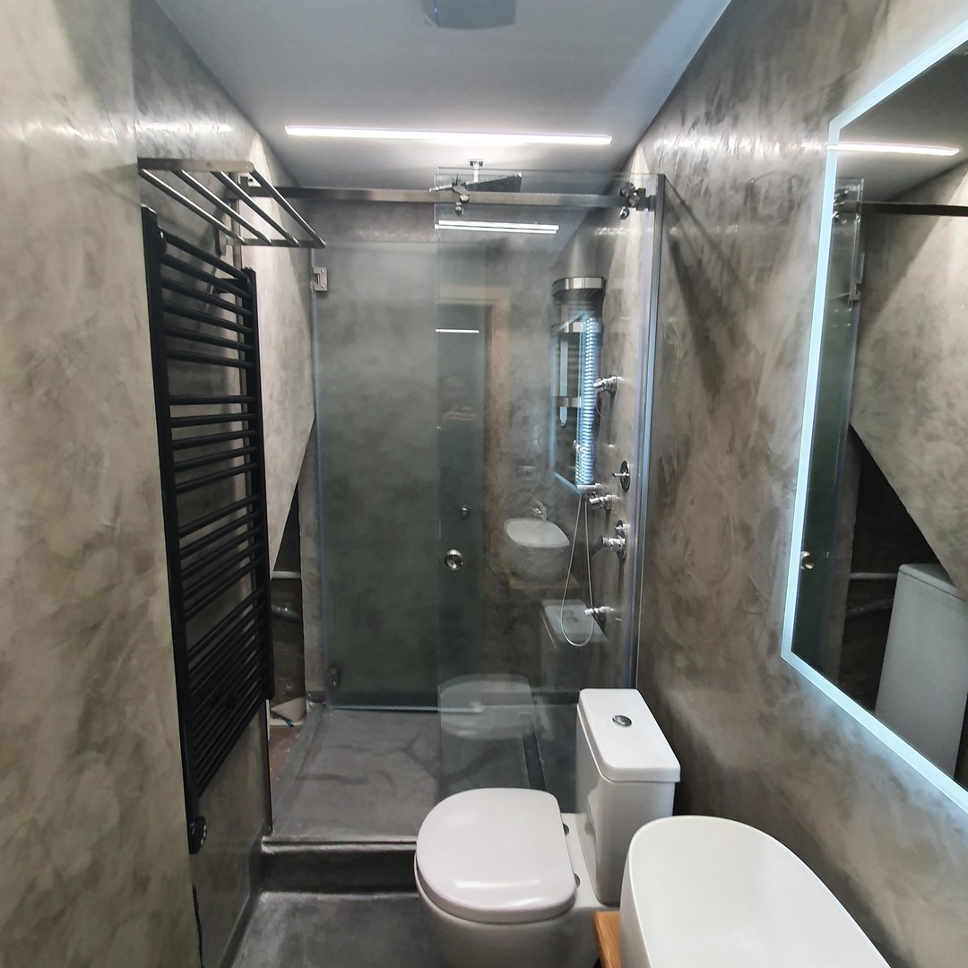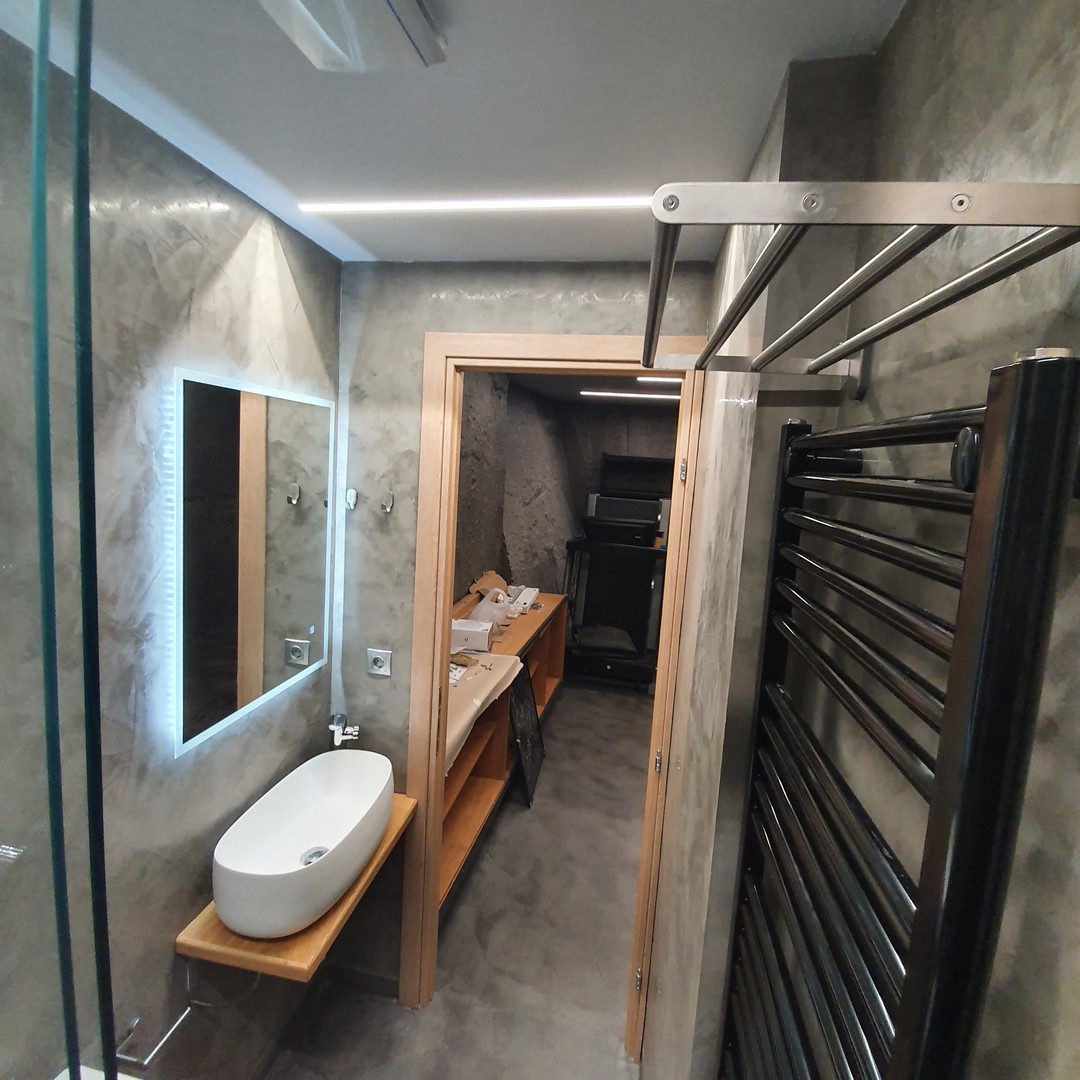 Μετατροπή παλαιού βόθρου 25τ.μ σε προσωπικό χώρο χρήσης με λουτρό με Ντους και εντοιχιζόμενων είδη υγιεινής Grohe χώρο εκγύμνασης.