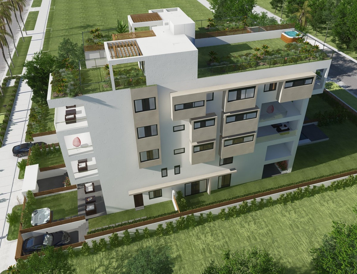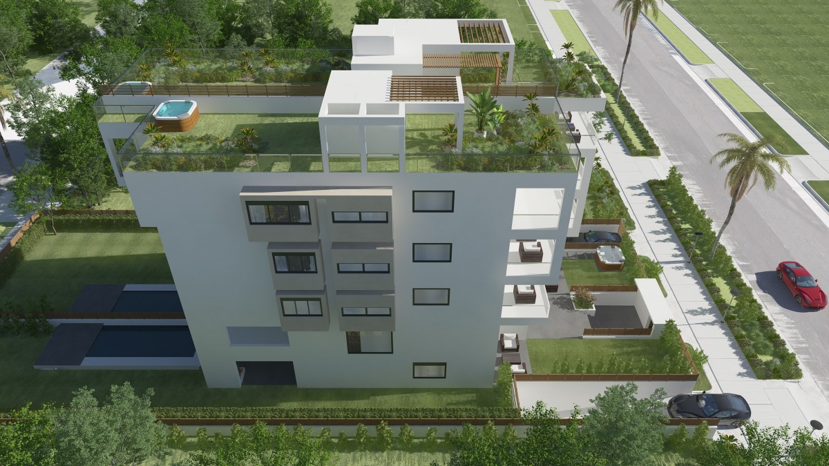 Πολυτελές κτήριο 11 διαμερισμάτων με υπόγειες θέσεις στάθμευσης και αποθήκες, πισίνες στις ισόγειες ιδιοκτησίες και κήπους.